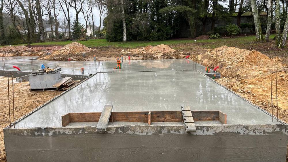 Pour ce projet, nos artisans maçons spécialisés dans le gros œuvre ont procédé à la construction d'une d'habitation. Cette maison d'architecte, tout comme chaque projet de maison, a nécessité un travail minutieux mais efficace. Nous avons d'abord réalisé les fondations puis le dallage en plancher. L'isolation du vide sanitaire puis le coulage du béton ont été effectués.